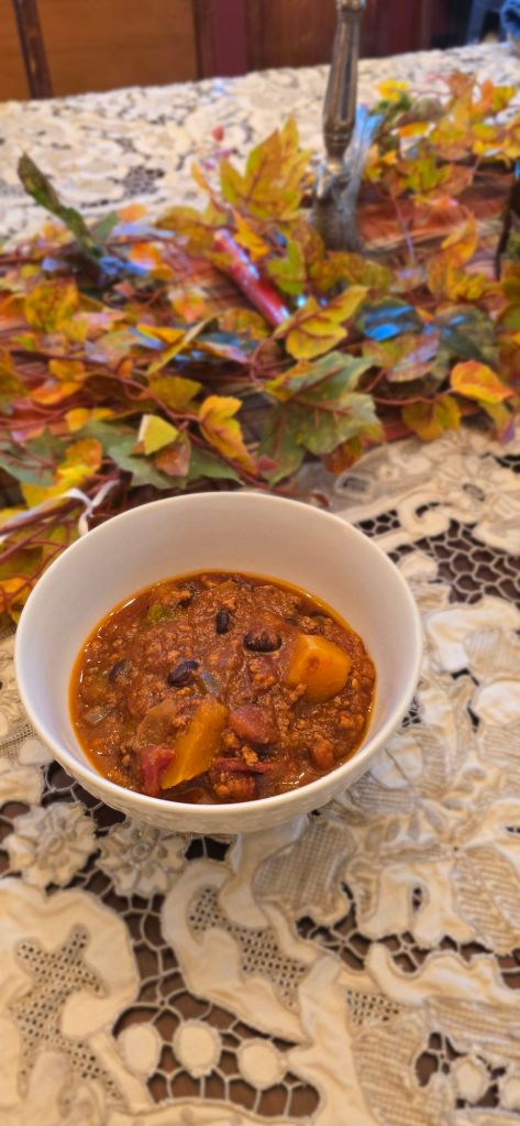 This chili turned out delicious – rich and savory with just the right touch of sweetness from the butternut squash. It’s the kind of meal that feels like a hug after a day of shifting temperatures, a reminder of why I love this season so much.